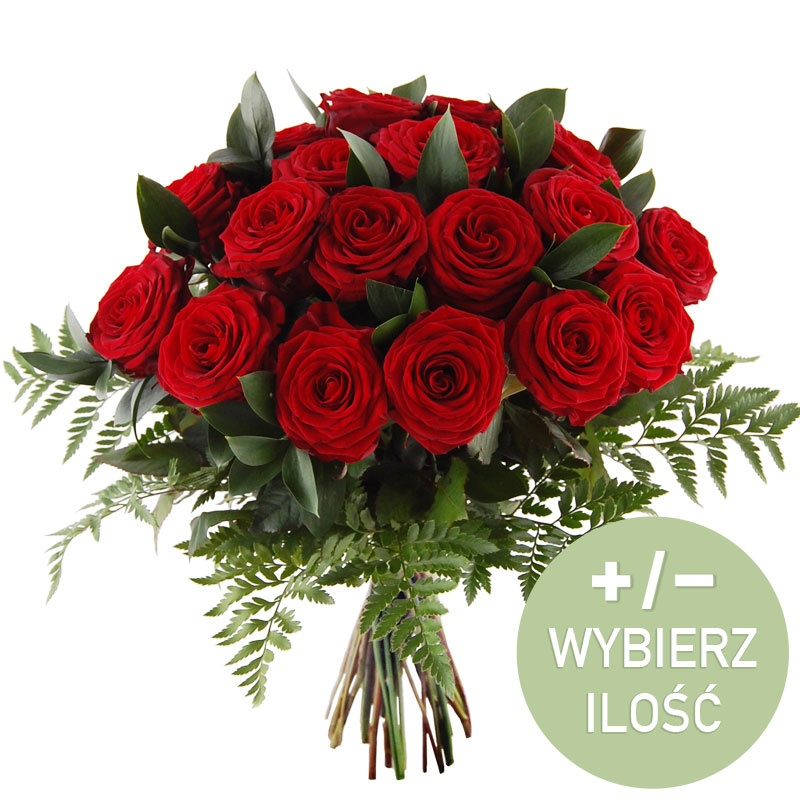 Skomponuj indywidualnie piękny bukiet czerwonych róż i wybierz odpowiednią ilość oraz długość kwiatów. Długość róż w wersji: